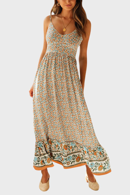 Венцислава™ - Макси рокля на цветя с тънки презрамки