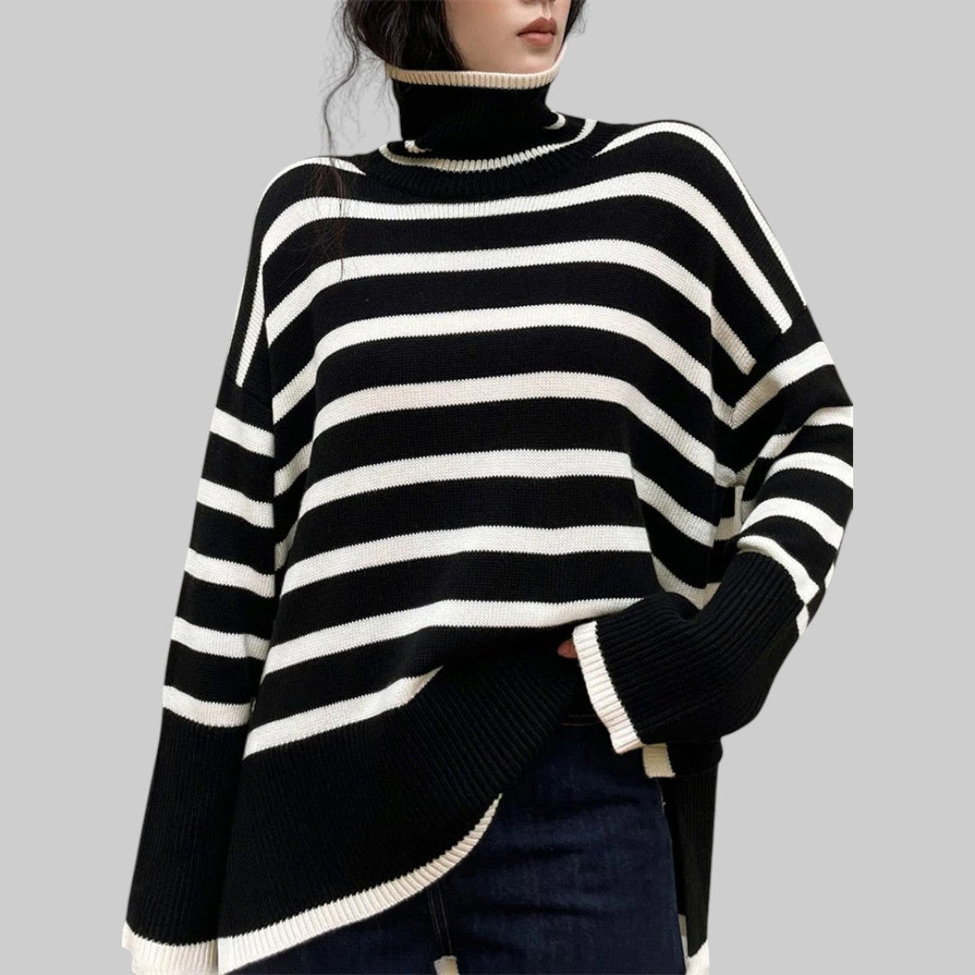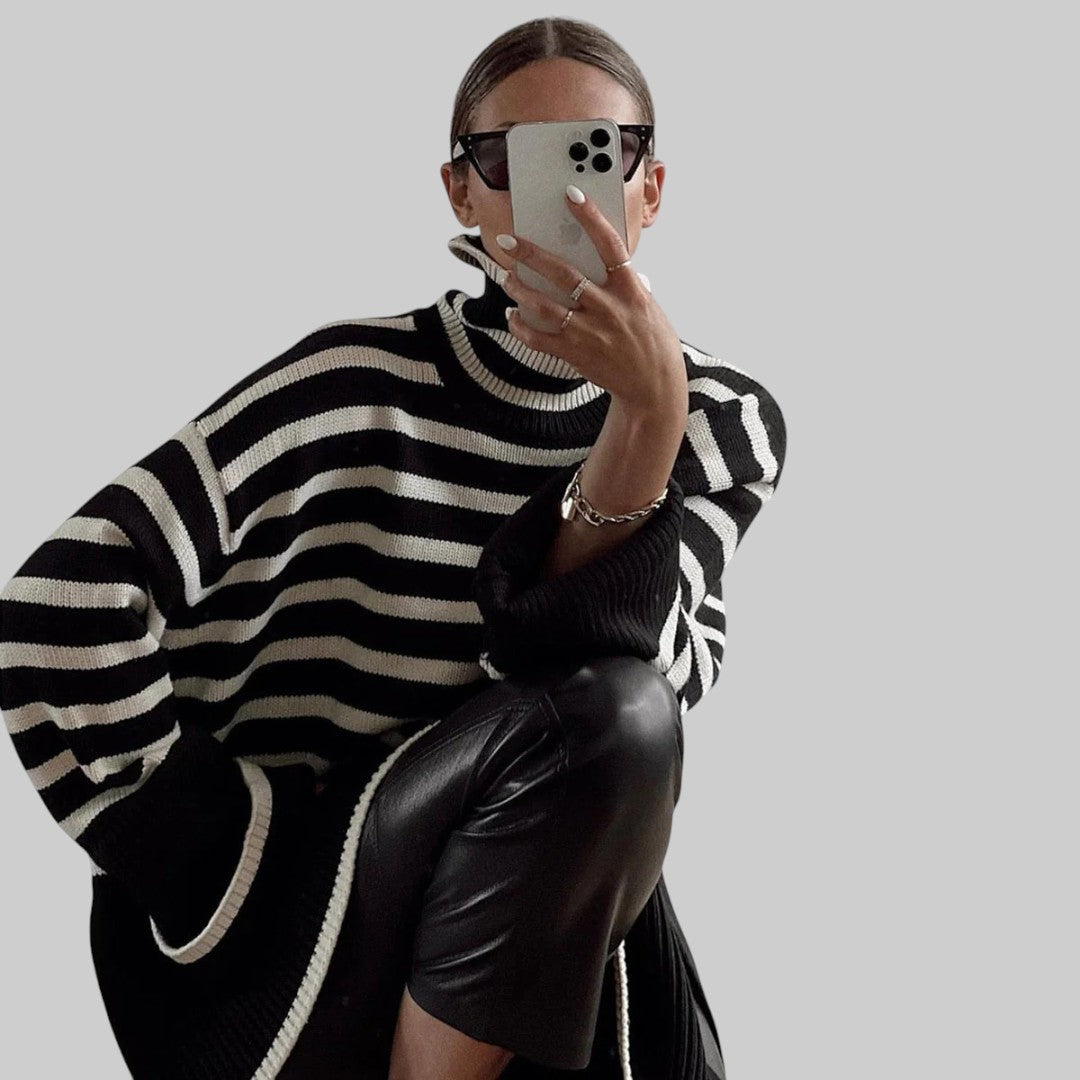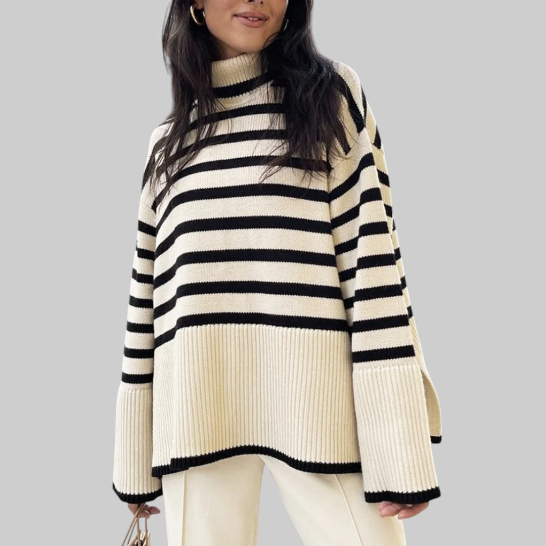 Беатрис - Удобен oversize плетен пуловер с райета