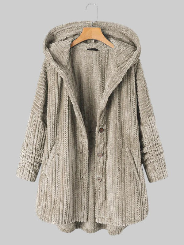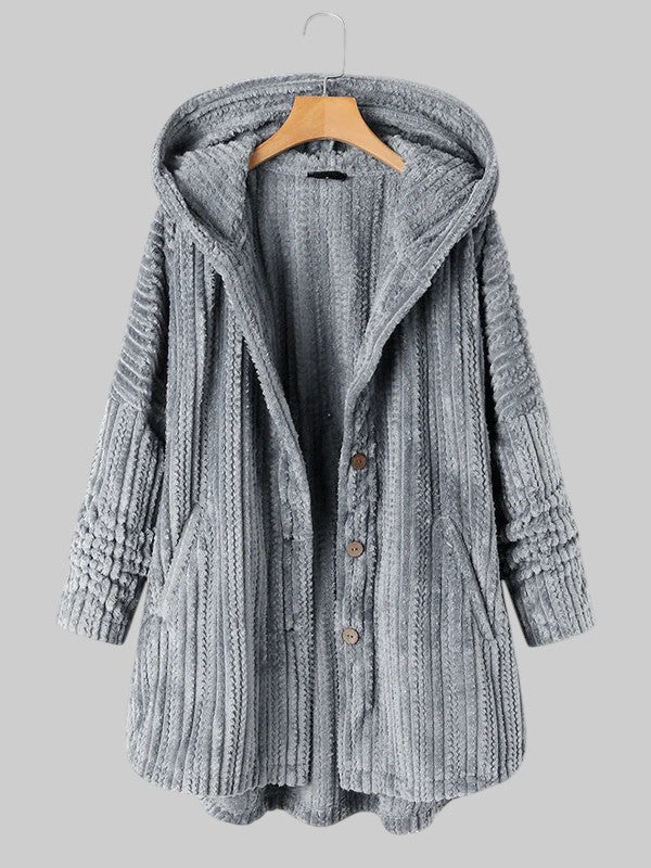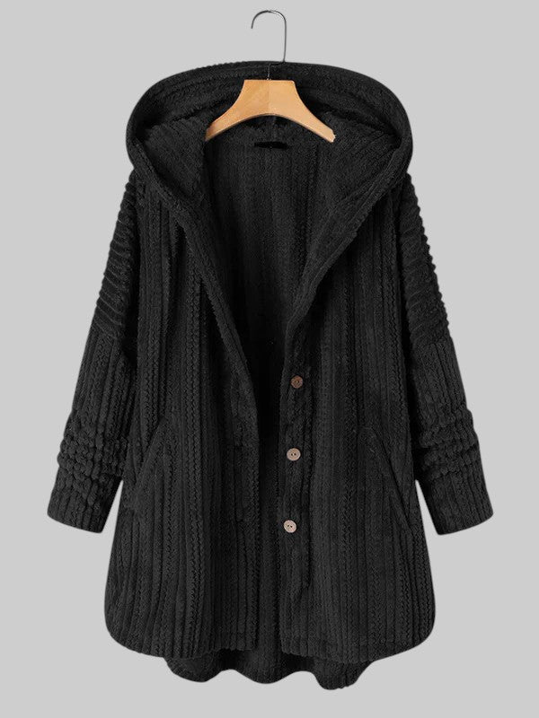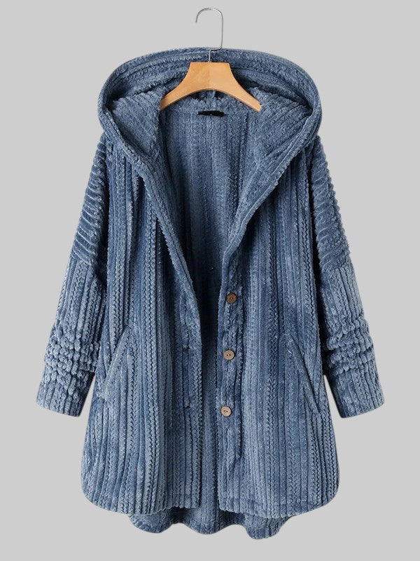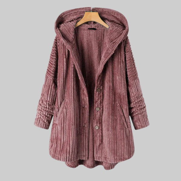 Пригответе се да впечатлявате в студеното време с палто Дария с ревери. Това не е просто обикновено палто; това е вашият най-добър стилен партньор за зимата. Проектирано с oversized кройка, палтото предлага перфектна комбинация от топлина и изисканост, благодарение на елегантните копчета и удобната качулка.