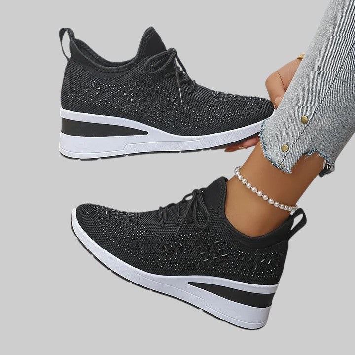 - Подкрепа и стабилност: Леко повдигнатият ток осигурява по-добра стойка и намалява натиска върху краката и кръста, което прави всяка стъпка плавна и балансирана.