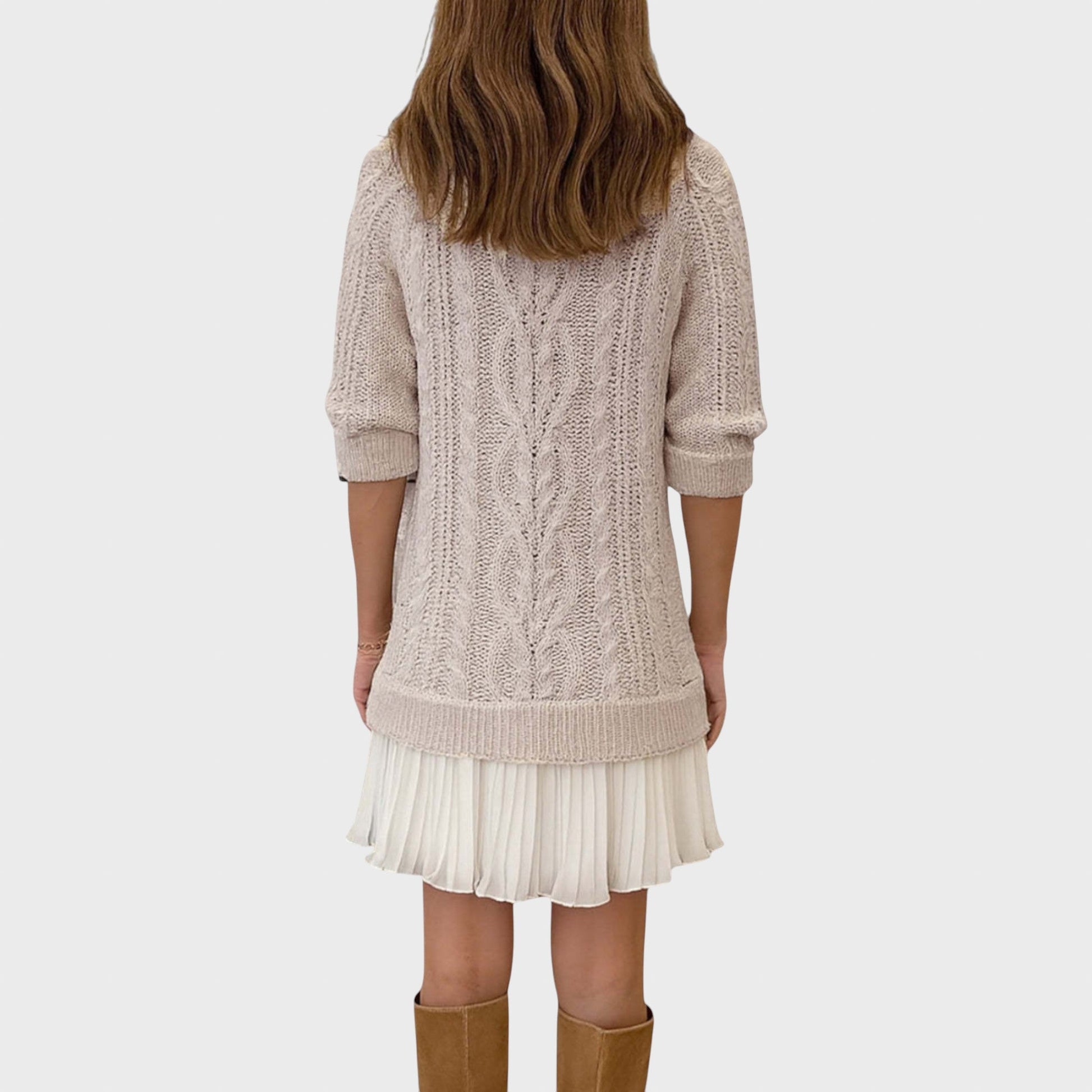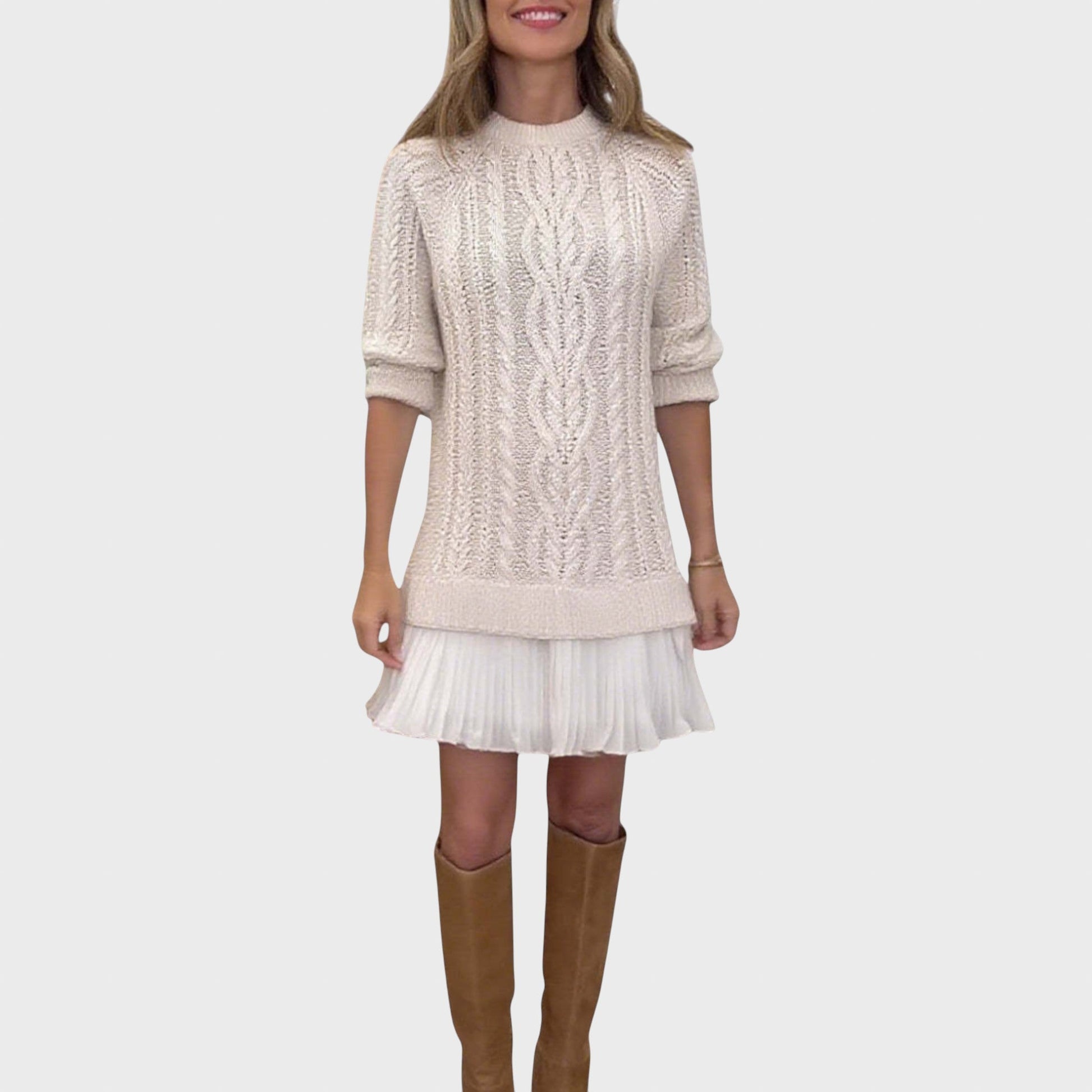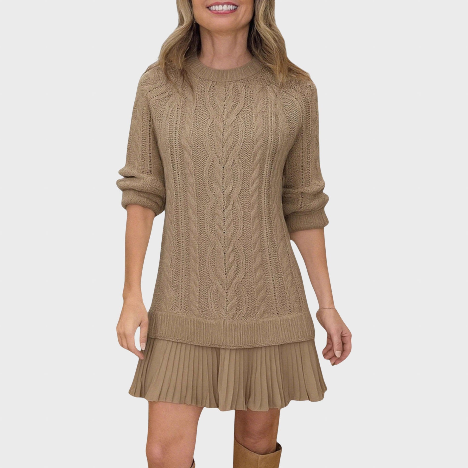 Представяме ви нашата плетена рокля, която съчетава стил и благополучие в едно. Тази универсална рокля е идеална за всякакви поводи - от спокойни ежедневни визии до елегантни вечерни ансамбли.
