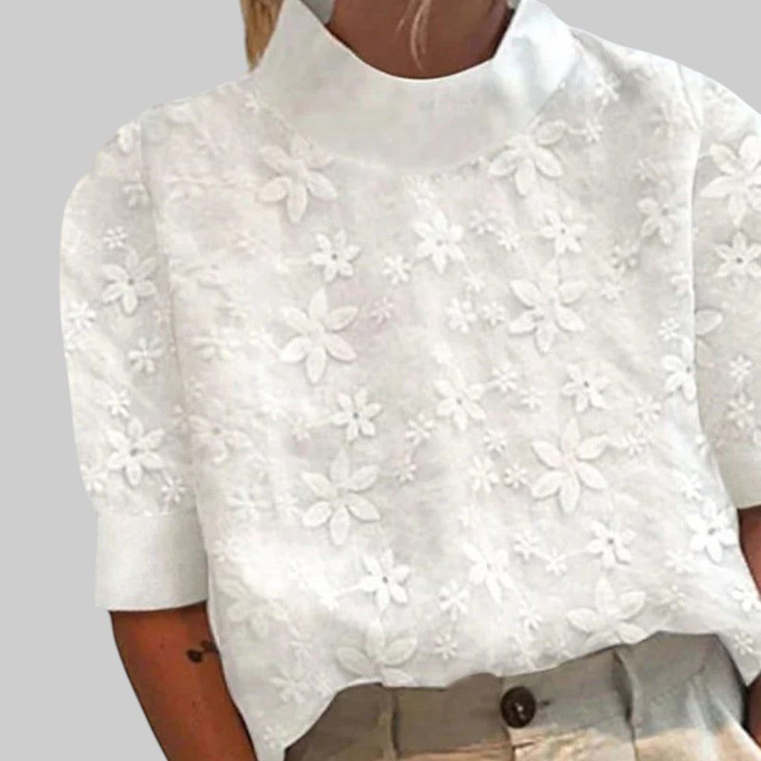 Открийте нашия стилен и удобен топ, идеален за всякакви поводи! Изработен от висококачествени памучни смеси и дантела, този топ е перфектен за ежедневието и работата. С поло яка и полуръкави, той предлага елегантен и модерен вид.